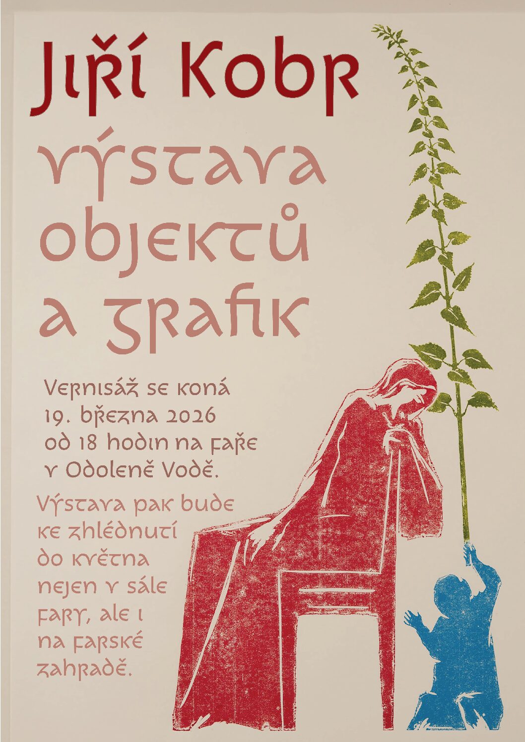 Ve čtvrtek 19. března v 18 hodin vás srdečně zveme na faru v Odoleně Vodě na vernisáž výstavy sochaře a řezbáře Jiřího Kobra, autora reliéfu Panny Marie na našem novém zvonu.  V rozhovoru s Karlem Oujezdským Jiří Kobr ke své tvorbě poznamenává: „Náboženská témata dělám z toho důvodu, že mi tam určitý typ lidských situací […]