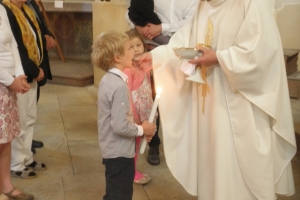 O svatodušní neděli 31. 5. v kostele sv. Vavřince ve Veliké Vsi svátost eucharistie přijali Vojtěch a Emil.