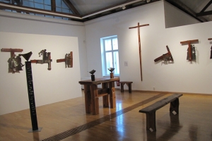 Kněží jako zadavatelé sehráli v této „nesvaté době“ při vzniku umělecký děl zcela zásadní roli. Většina realizací vznikla jen díky odvaze těchto duchovních správců, kteří se nebáli navzdory režimu vnášet do sakrálních prostor nové umělecky pojaté předměty. Navíc dokázali pro ně získat i věřící. Jedním z takových odvážných je právě i Pavel Kuneš, který v osmdesátých letech inicioval vznik Vodolského Betléma. Velice si s kolegou Ivo Binderem vážíme spolupráce s P. Kunešem, který nám ochotně zapůjčil na výstavu sedm zastavení křížové cesty Vojmíra Vokolka a také obraz Davida a Goliáše od Ivana Sobotky.